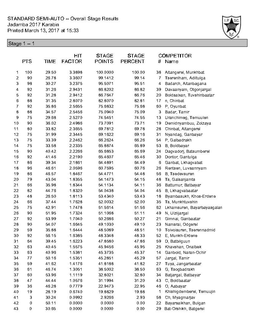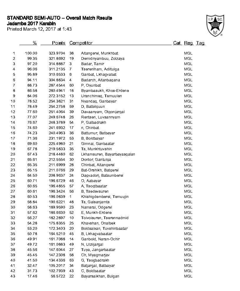 2017 оны 3-р сарын 11-ний Бямба гаригт Монголын Практик Буудлагын Холбооны буудлагын талбай дээр МПБХ, Зэвсэгт Хүчний 084-р ангиас хамтран цэрэг, цагдаа, хүчний байгууллагуудын алба хаагч нарын дунд жил бүр уламжлал болгон зохион байгуулдаг дэслэгч генерал Ш.Жадамбын нэрэмжит “Монгол цэрэг 2017” тэмцээн эхэллээ. Тэмцээн карабины төрлөөр эхэлсэн юм. Ингээд 3-р сарын 11-ний өдөр болж өнгөрсөн карабины тэмцээний дүнг дэлгэрэнгүй танилцуулъя.