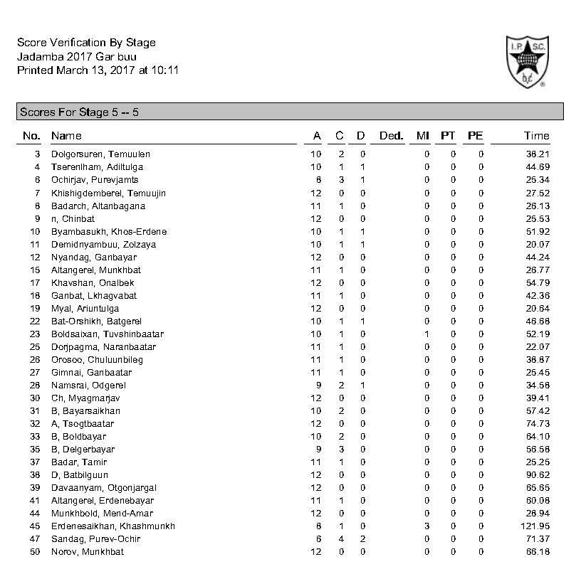 5-р дасгалын хувьд Макаров ангилалд М.Мэнд-Амар, Стандарт ангилалд М.Ариунтулга нар 100%-ийн амжилт үзүүлж бусдыгаа хошуучилжээ.