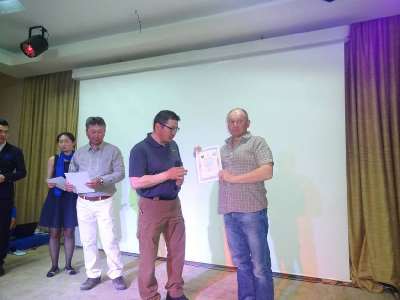 Багийн дүнгээр алтан медаль хүртсэн “Forensic” багийнхан. Зүүн гараас: Н.Ганбаяр, М.Чинбат, Д.Золзаяа, Б.Хос-Эрдэнэ нар шагнал гардуулсан холбооны удирдлагуудын хамт.