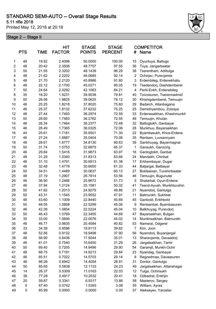 2-р дасгалд хамгийн богино хугацааг спортын мастер Т.Цэрэннадмид үзүүлсэн агаад хэд хэдэн буудагч бүтэн онооны үзүүлэлт гаргасан байна.