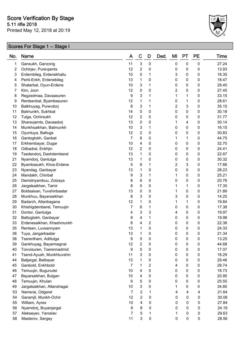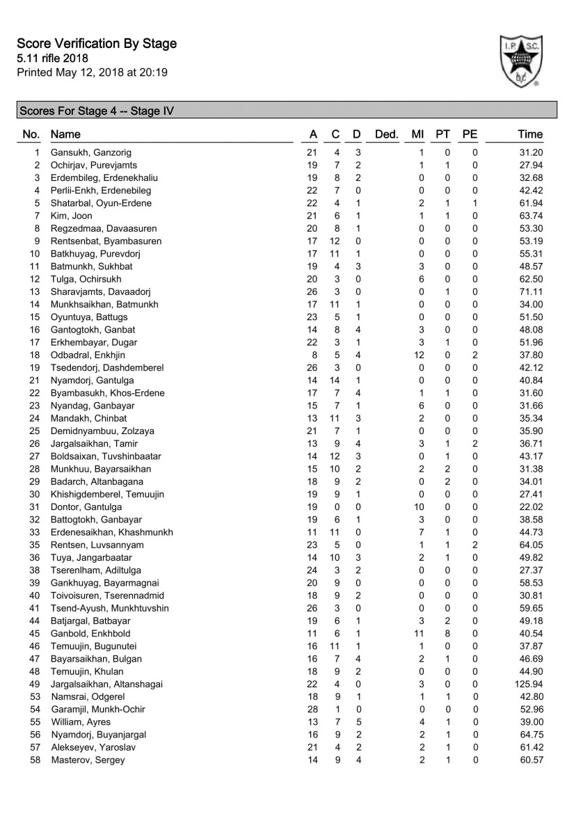 Практик буудлагын спортын дүрэм ёсоор багийн дүнг тухайн багийн 4 гишүүний 3-ынх нь авсан онооны нийлбэрээр тооцдог. Түүнчлэн дүрэм ёсоор тухайн ангилалд 4-өөс цөөн баг оролцсон тохиолдолд багийн дүнг шалгаруулдаггүй.