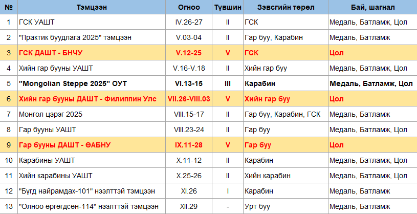 Тайлбар: Тэмцээний IPSC түвшинг эндээс үзнэ үү.